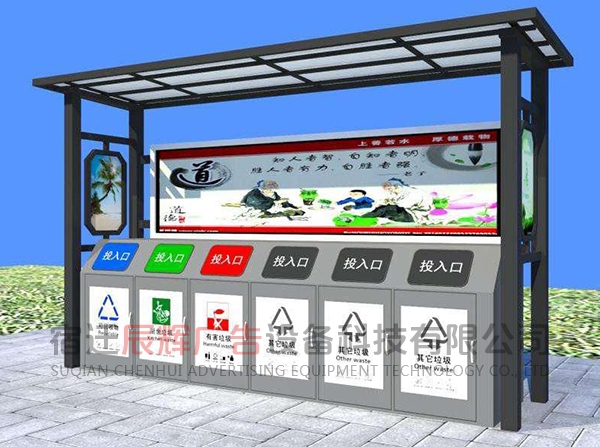 垃圾分類亭一般放在小區(qū)或者公共的地方集合垃圾之用。同樣的材料也可制成配電房、報(bào)亭、崗?fù)ぁ⒕皡^(qū)休息室等。宿遷辰輝廣告設(shè)備科技有限公司,我們的產(chǎn)品豐富多元化,應(yīng)用場(chǎng)景廣泛,也可以根據(jù)客戶的需要來(lái)圖定做。